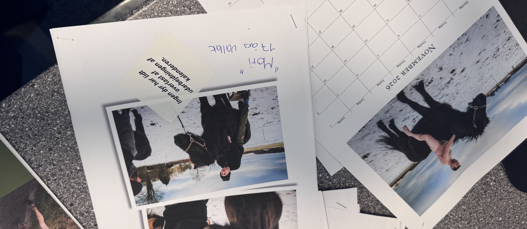 Vi forventer, at kalenderen er klar i begyndelsen af november. Så snart den lander fra trykkeriet, går vi i gang med at pakke og gøre klar til salg.